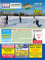 Circulation 5,250. We cover Whitecourt's trading area. Every month 3,239 copies of the Advisor are mailed out to Blue Ridge, Carrot Creek, Fox Creek, Fort Assiniboine, Mayerthorpe, Peers, Sangudo and Swan Hills with an additional 1,000+ mailed out in Whitecourt. Another 1,000 copies are dropped off at coffee shops,